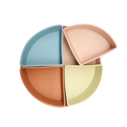 ZYAN 4-Compartment Silicone Suction Plate – Mess-Free Weaning & Toddler Feeding (Blue/Pink)